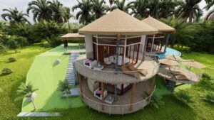 Créé pour répondre aux exigences et aspirations de nos vies modernes tout en respectant le cadre naturel du domaine, le concept architectural met en valeur la vue et les volumes, avec des baies vitrées offrant une ouverture à 180 degrés, permettant d’apprécier la vue panoramique sur l’océan et la forêt primaire.